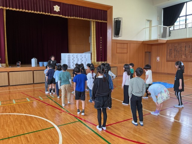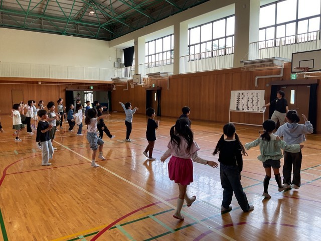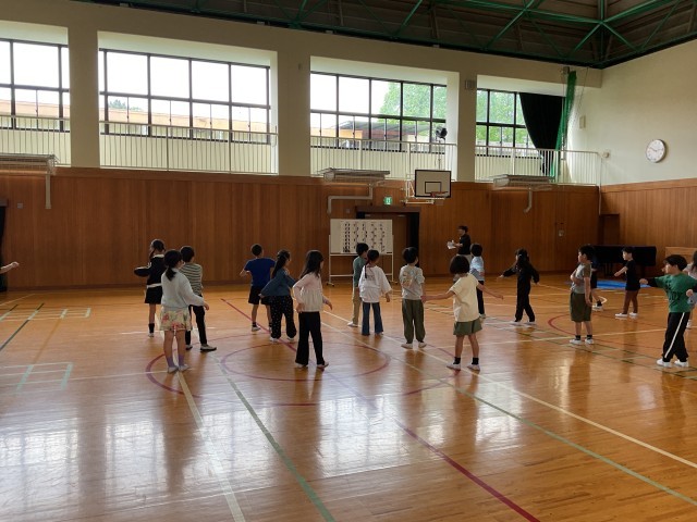 3年生では、体育でも行う準備体操の練習をしています。