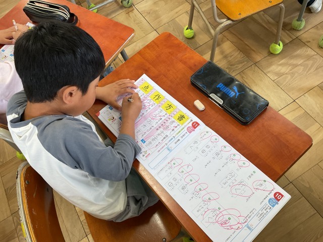 書き順や読み、書くときの注意などきっちりと指導しています。
