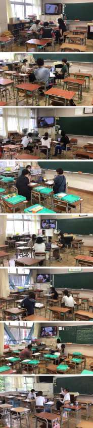 次は、子どもたちの話し合い活動と同じように、先生方もそれぞれ少人数のグループに分かれて参観した授業を振り返ります。高学年が協力して準備した授業を見せてもらったお返しに、効果的な評価と助言ができるように、そして6年1組のみんなに負けないように話し合います。