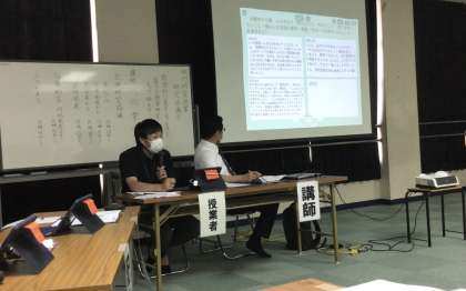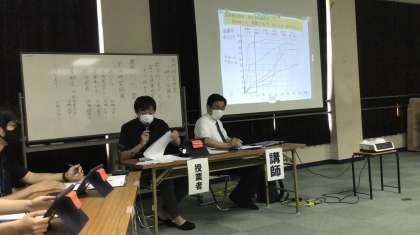 そして全体会です。授業者の白井先生からの報告、各グループで話し合った内容の共有を行い、最後に講師の川北先生からご指導・ご助言をいただいて校内研修の1回めを終えました。