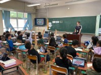担任の先生方の説明を聞きながら校区を巡っています。さすが2年生、案外知らないのではなく、けっこう知ってるようです!