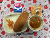 【献立】ご飯・麻婆豆腐・ツナとにんじんのサラダ・さつまいもスティック・牛乳