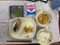 【献立】アップルパン・イカと冬野菜の中華炒め・じゃがいももちのキムチスープ・もやしの炒め物・牛乳