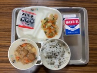 今日の給食には鶏肉のマーマレード焼きが出ました。マーマレードには鶏肉を柔らかくす...