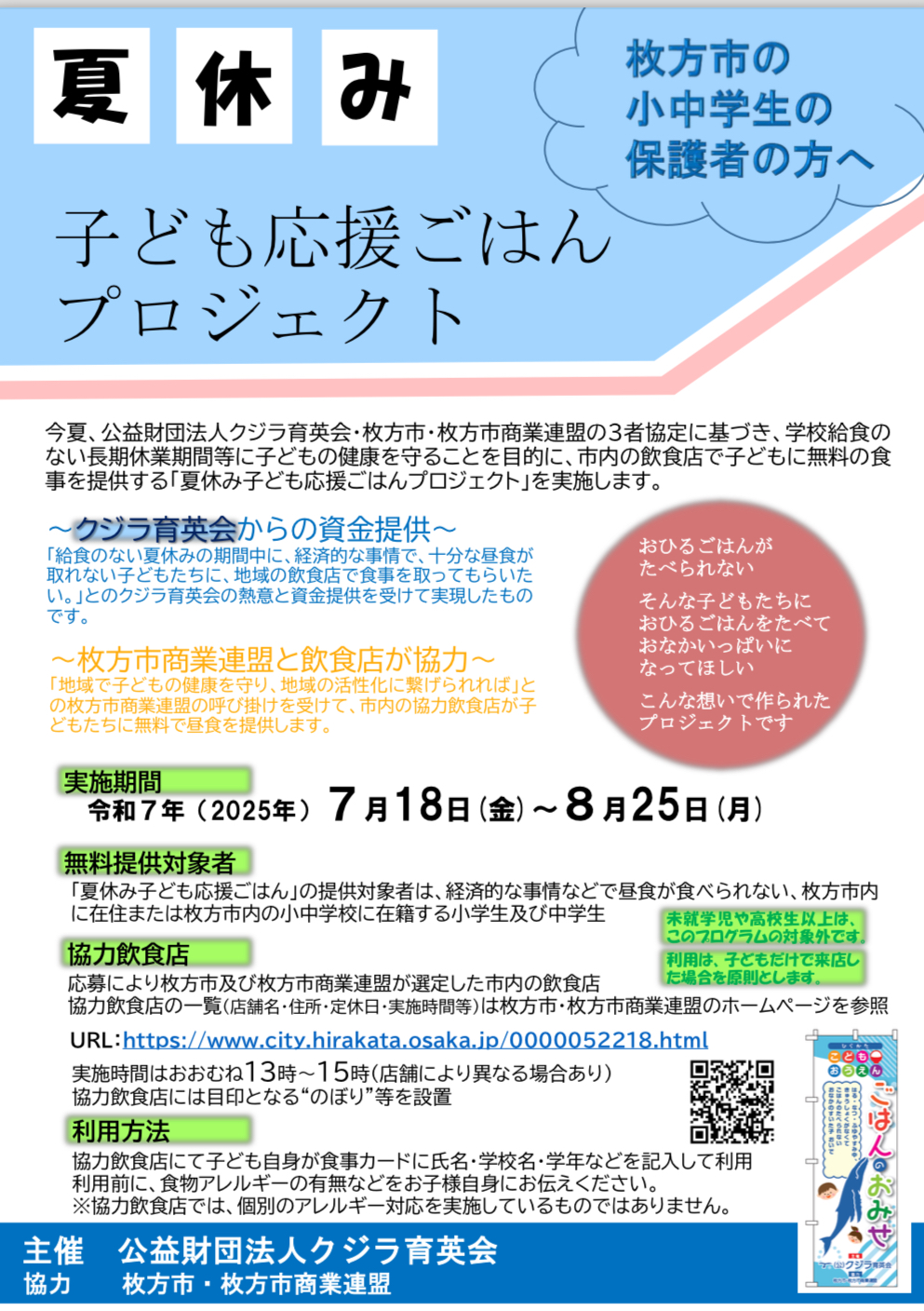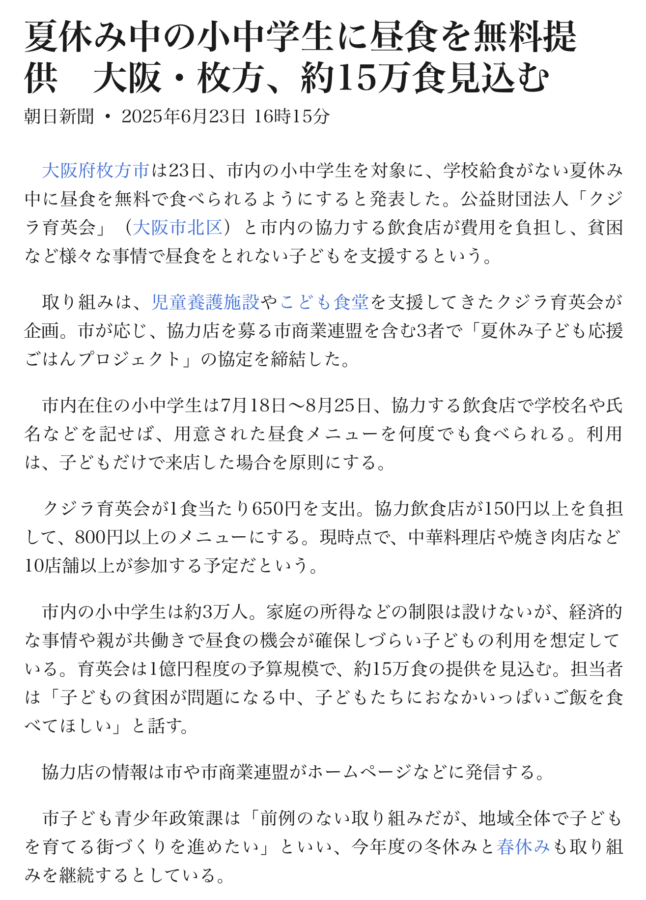 【枚方市 夏休みの小中学生に昼食を無料提供 約15万食見込む】 JPEG
