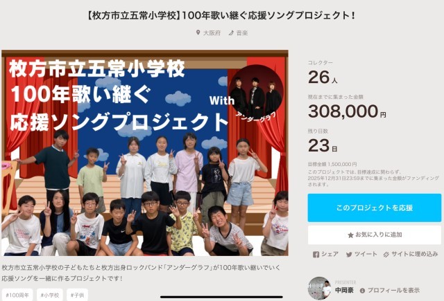 【五常小100年応援ソングプロジェクト クラファン進行中!】