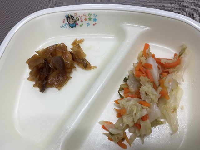 さて、添え物はチンゲンサイからキャベツに変更になっています。