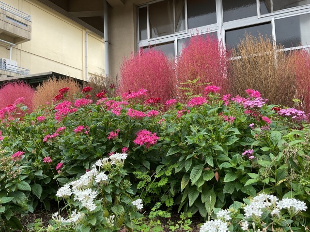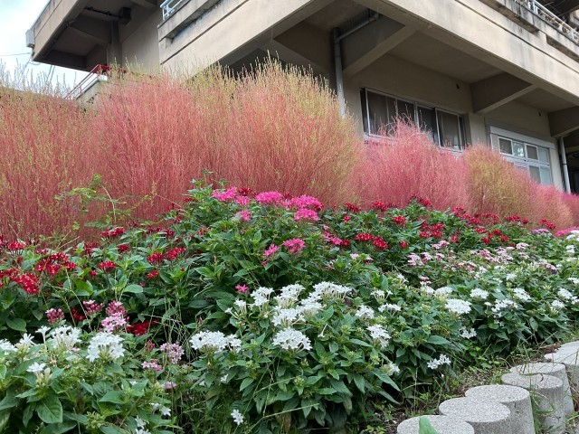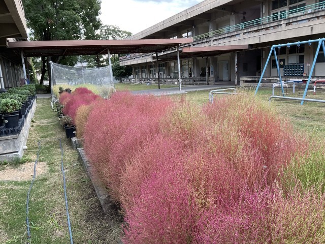 寒くなると色づくのですが、今年は沖縄でも多くのコキアを街路に植えるという試みが行われているそうです。