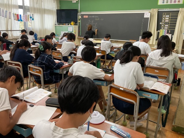 すでに、先生は今日のめあてに関する立体図を黒板に書きました。