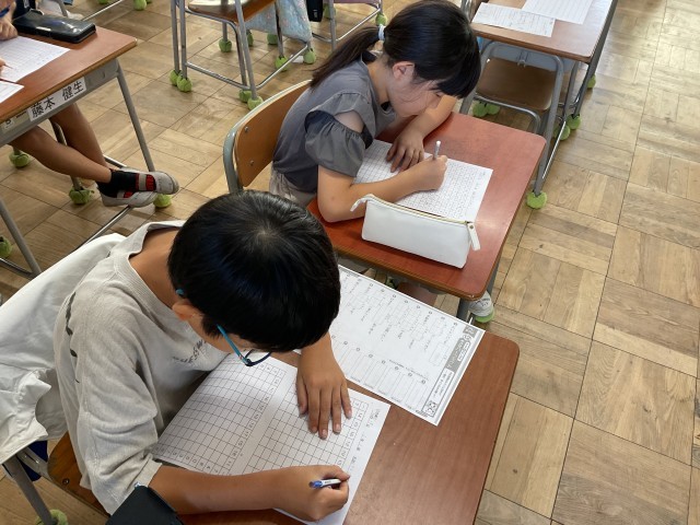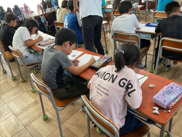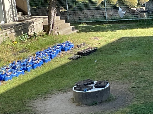 昨日2年生がまいた青いキャベツのタネが中庭にありますね。