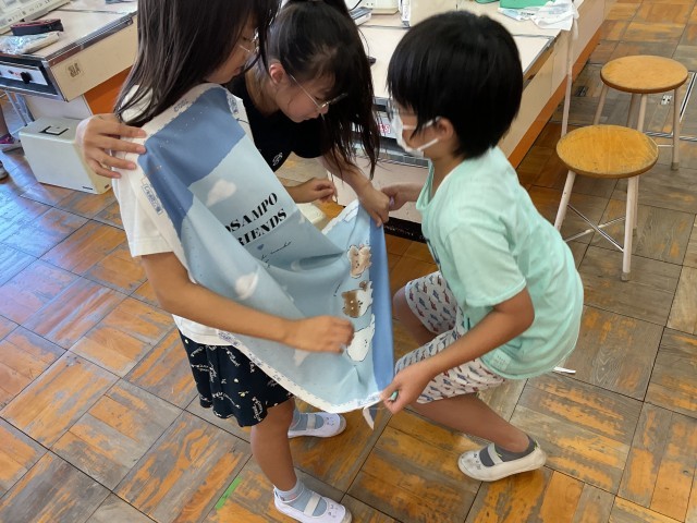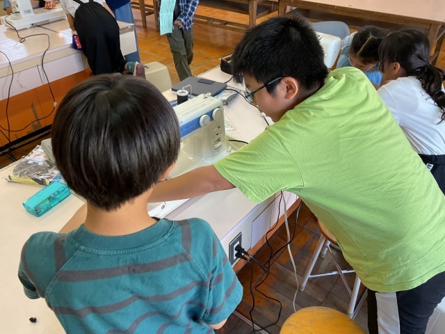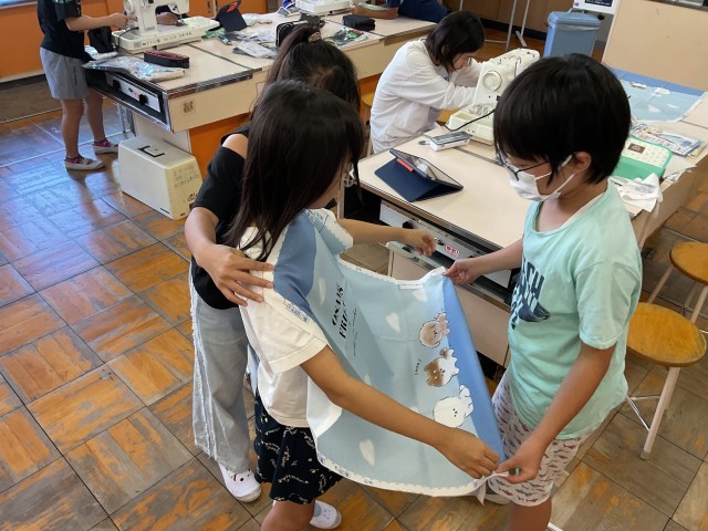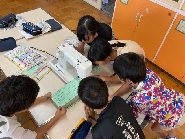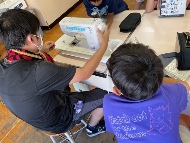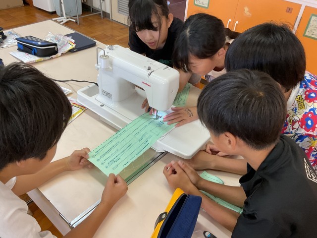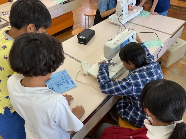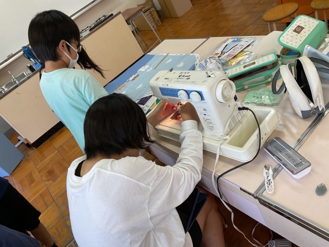 【17日金曜 5年生の家庭科 エプロンを難敵ミシーンで】2