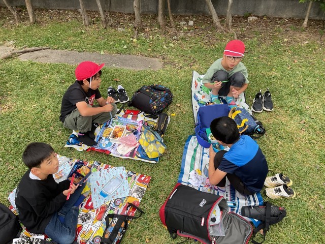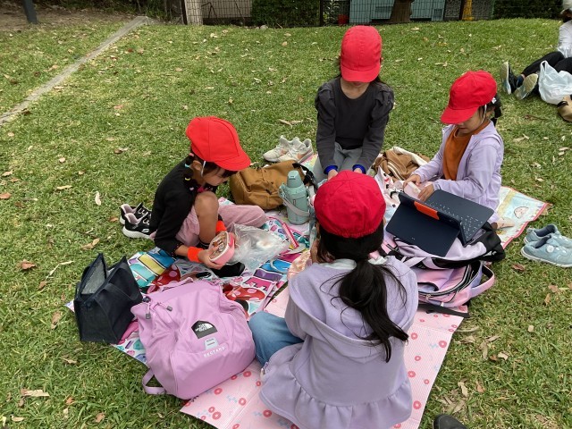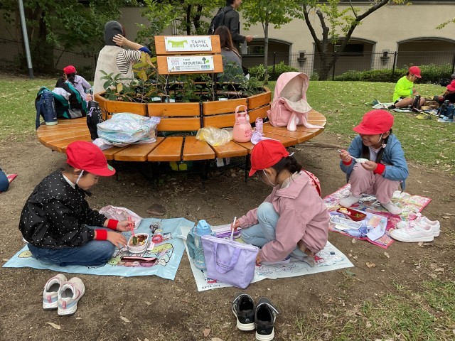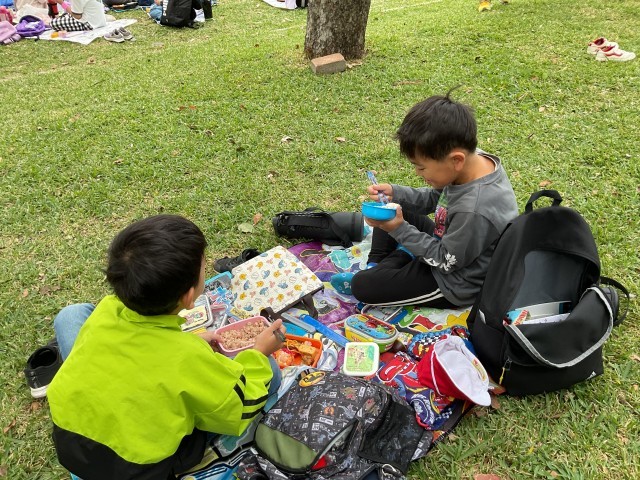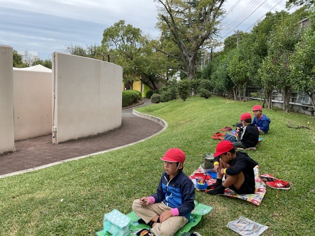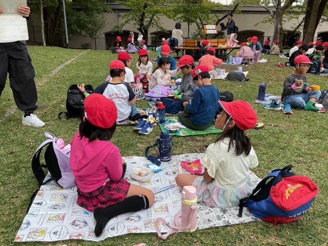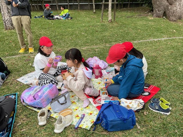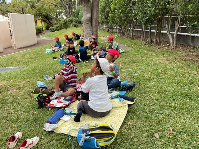 お家の方が作ってくれた、美味しいお弁当を口いっぱいにほおばってゴキゲンです。