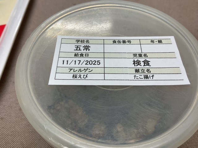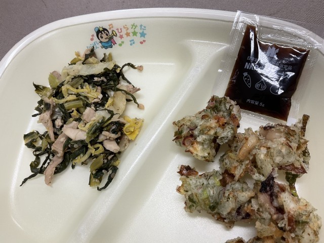 さて、今日はご覧のとおりたこ揚げの桜エビを除去した代替食が提供されています。