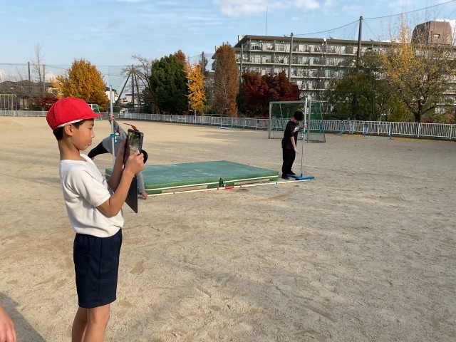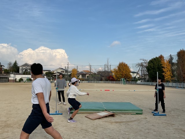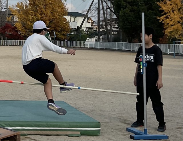 【2日火曜 6年生の体育 棒高跳び 踏み切りの足の角度に】2