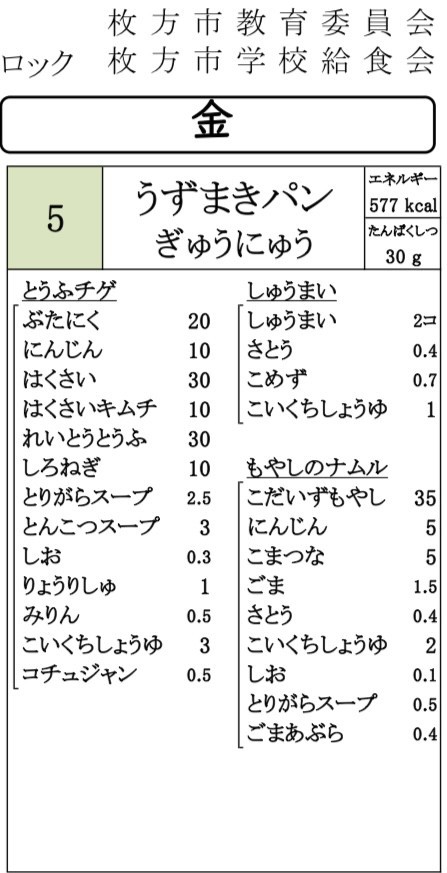 【5日金曜 うずまきパンと中韓のお料理競演】