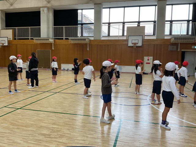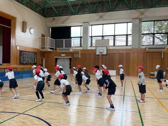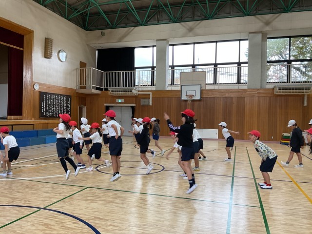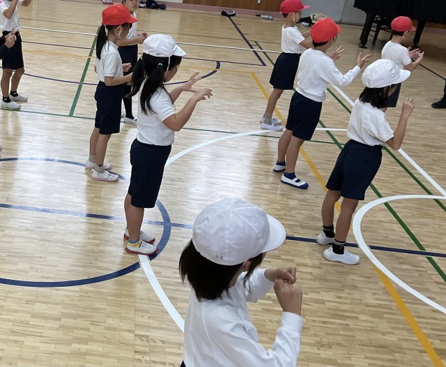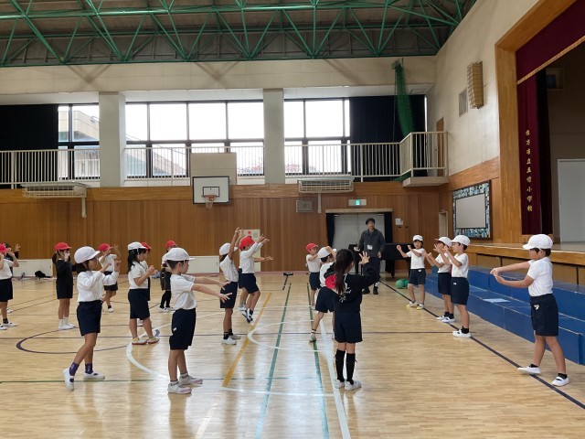この頃になると、1、2年生でも体操係が前に出て普通に自分たちでできていますよ。