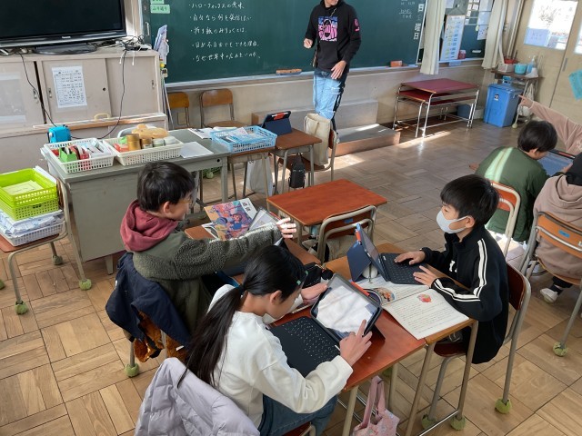 今日の道徳のスタイルは、グループでの話し合いです。