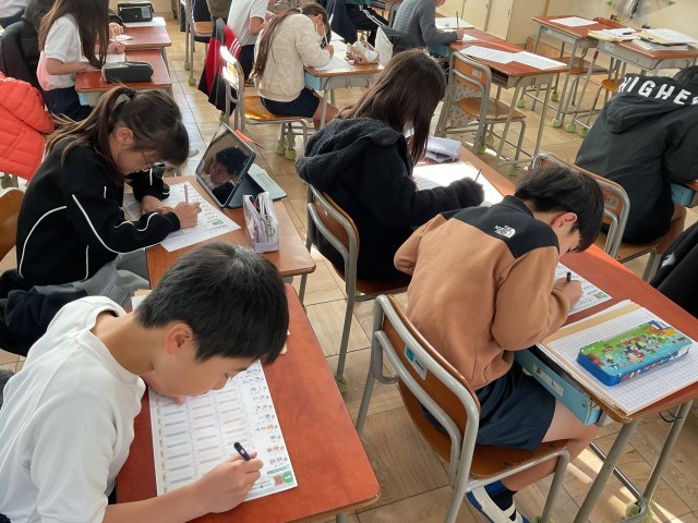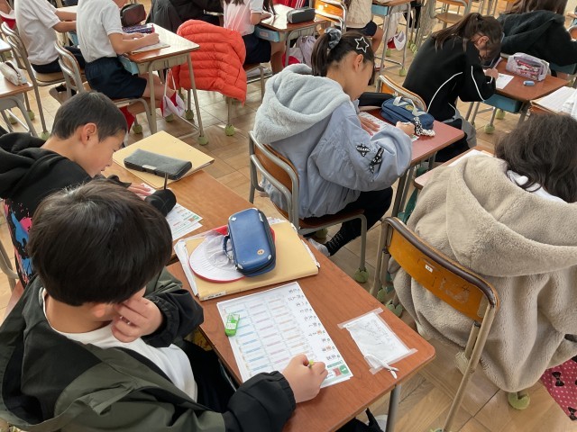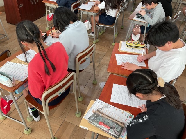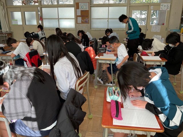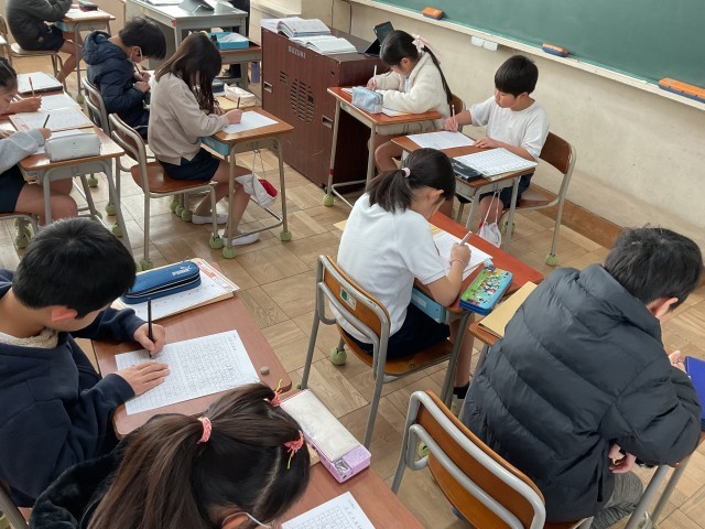 写真は、百ます計算から、漢字に移るところです。