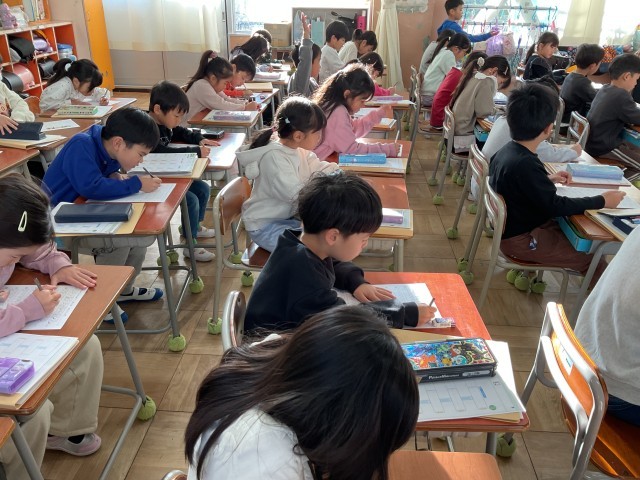 終わった児童からハイッっ!と申告し先生がタイムを読み上げるので自分で記録します。