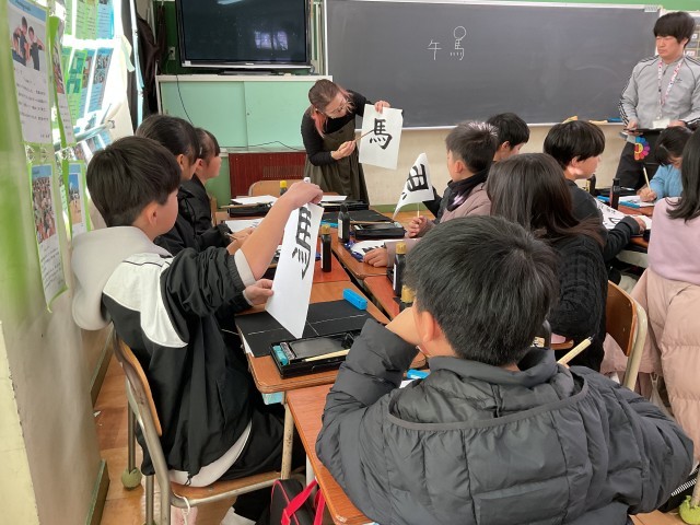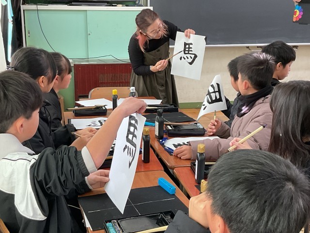 【15日木曜 6年生の書き初め 縁起の良い左馬】2