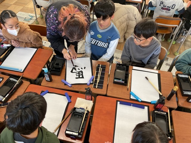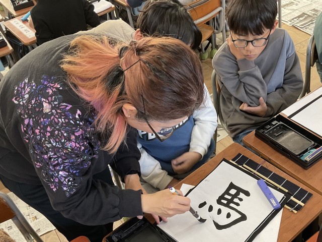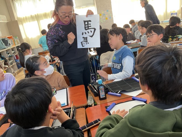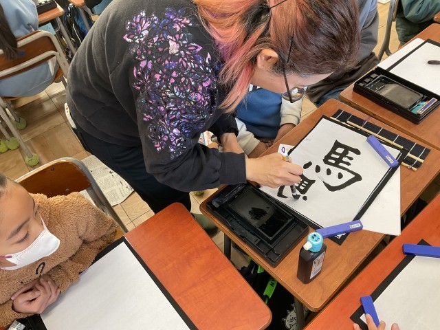 この日も、班ごとにシャシャっとお手本を書く先生に、おおお〜〜っ!