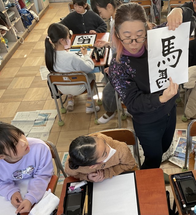 実は、書家の綾塔先生には、6年生2クラスに教えた翌日、