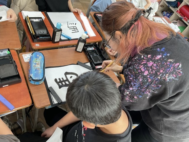 この日も、班ごとにシャシャっとお手本を書く先生に、おおお〜〜っ!