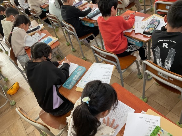 音読暗唱が終わったらすぐにます計算の準備をします。