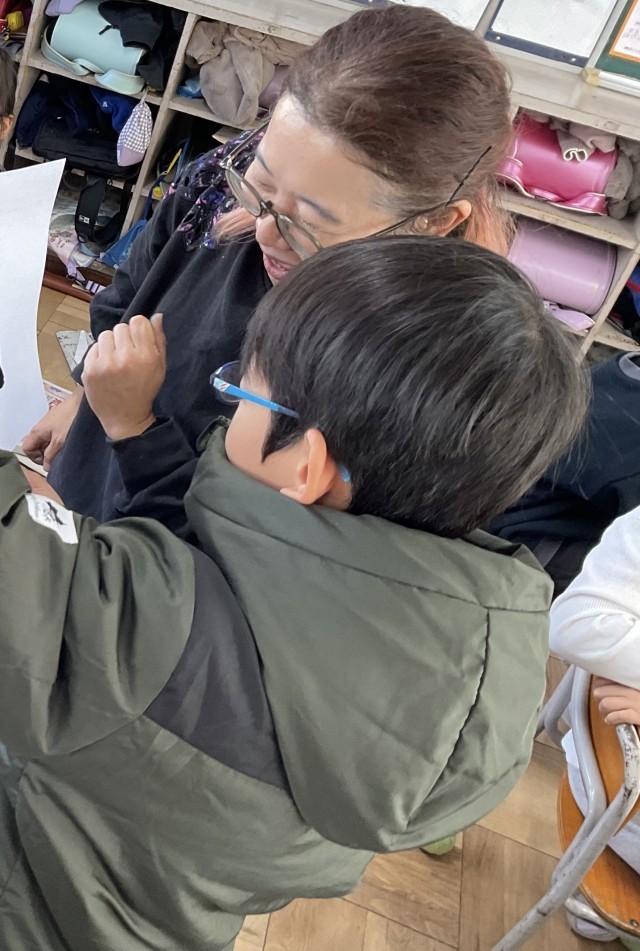 こんなんできたよ〜。子どもたちが寄って来ます。