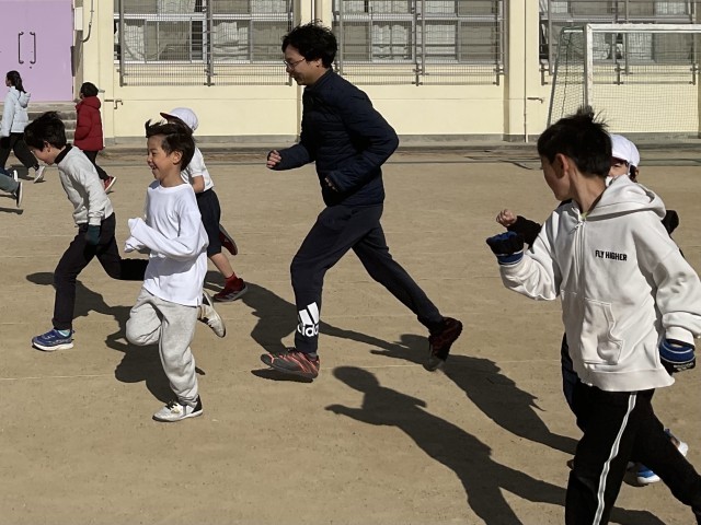 2年生、先生といっしょに走って、うれしそう😄