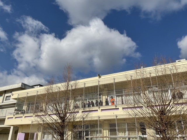 6年教室のバルコニーには、応援組の姿が。。。