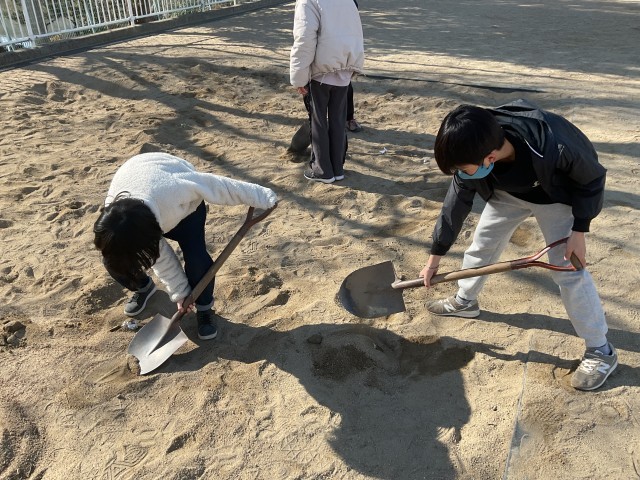 スコップ部隊が必死に掘っています!