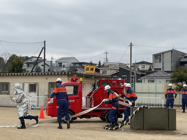 消防団による、放水消火活動が行われています。