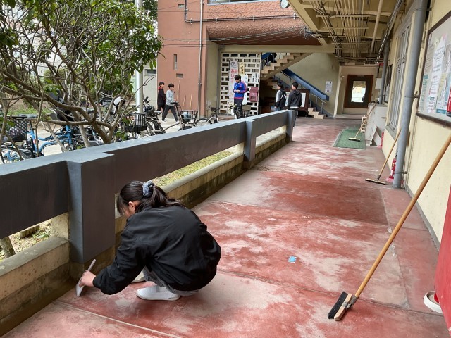 いつもの掃除の時間とは違い?真剣な表情で黙々と作業していました。