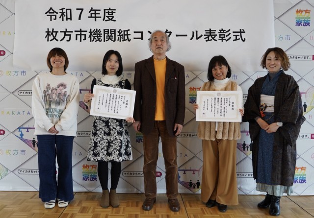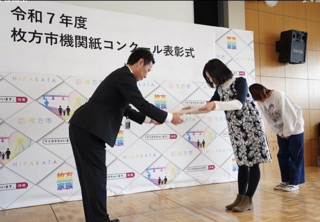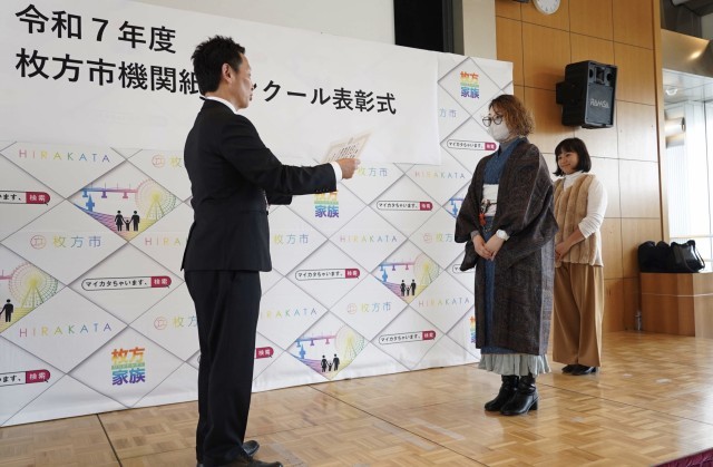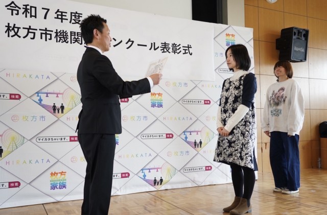 写真は市役所で行われた表彰式の様子です。
