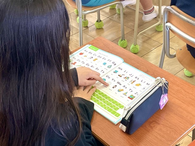 アルファベットの歌を元気に歌っています。