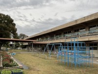 教室を出るとすぐに外という、開放廊下らしい風景でした。