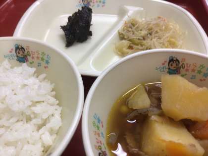 【19日火曜 肉じゃがだよ!】 公開日 2022/04/19 更新日 2022/04/19 給食を食べよう! 5、6年生が頭をフル回転させてテストに取り組んでいます。 肉じゃがは甘みがあって、脳に栄養を送るのに良さそうですね。 黒い物体は、ノリの佃煮です。 ほんのり塩分、甘味と旨味あふれる逸品。 こんなに上品な佃煮は食べたことがありません。 小おかずは、春雨と春キャベツの和物。春の和定食にぴったりな料理です。 いいね(0)
