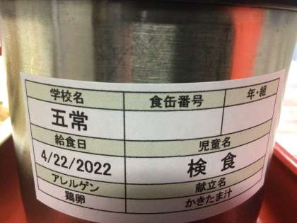 【22日金曜 卵アレルギー対応食の日】 公開日 2022/04/22 更新日 2022/04/22 給食を食べよう! 今日は、今年度初めての卵アレルギー対応食の提供日です。 やはり人数では卵アレルギーが一番多いので、 気合を入れて受け渡しに臨みました。 本校のルールでは、給食室入口に番号を記した黄色の札を貼っておき、 校長が、その札と交換に、対応食を担任に直接受け渡して漏れを防ぎます。 上段;こういうミニ食缶で届けられます。 中段;通常食 下段;アレルギー対応食 いいね(0)