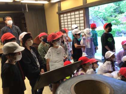 【22日木曜 3年生校外学習 鋳物工場と民俗 旧田中家】6 公開日 2022/09/22 更新日 2022/09/22 五常小の日常 大釜です。 電気釜ですと炊き上がるまで50分ほどかかりますが、 この大釜だと、なんと20分でオッケーだそうです。 いいね(0)