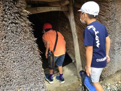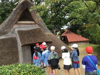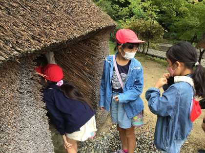 【22日木曜 3年生校外学習 鋳物工場と民俗 旧田中家】10 公開日 2022/09/23 更新日 2022/09/23 五常小の日常 次に、弥生時代中期の復元竪穴式住居です。(田口山遺跡) 中はカメラで撮りにくいですが、 直径8mの円を囲むようにして見学します。 茅葺き(かやぶき)屋根は、葦(よし)が使われていました。 そういえば、淀川にたくさん生えていますね。 いいね(0)