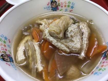 【17日月曜 食らわんかー、ごんぼ汁、食らわんかー】 公開日 2022/10/17 更新日 2022/10/17 給食を食べよう! ごんぼ汁は、枚方の郷土料理です。給食だよりによると、 船で淀川を行き来する三十石船の客に酒や食事を提供する 「くらわんか舟」で売られており、 「酒食らわんか〜、ごんぼ汁食らわんか〜」と 大きな声で売るのが名物だったそうです。 ↓↓↓月曜からわかめごはんの「登場」いつもより盛りが大きくなってしまいました。。。 いいね(0)