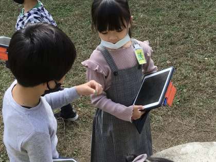 【21日金曜 1年生 中庭で秋の自然を観察中】4 公開日 2022/10/21 更新日 2022/10/21 五常小の日常 また1匹のバッタが捕獲され、、、 おっ、こちらも何か発見しましたよ。 いいね(0)