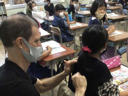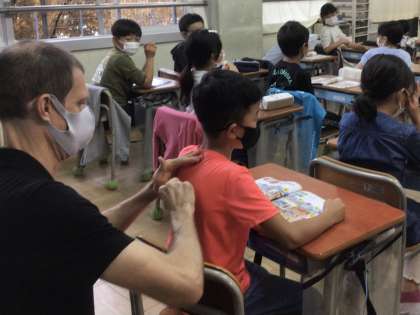 【今週の3年生 ネイティブの先生とアルファベットを制覇せよ】3 公開日 2022/10/22 更新日 2022/10/22 五常小の日常 ここでゲームやるよ〜〜パチパチパチパチ。(英語) 縦一列でチームを組み、指示があった文字を前の人の背中に書いて伝えます。 無言ですが、いわば伝言ゲームです。 さあ、スタート! いいね(0)
