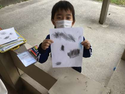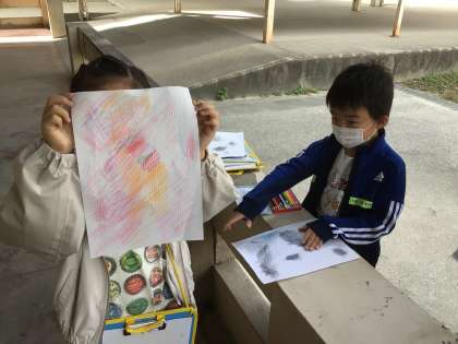 思い思いに描いたものを、誇らしげに見せてくれました。