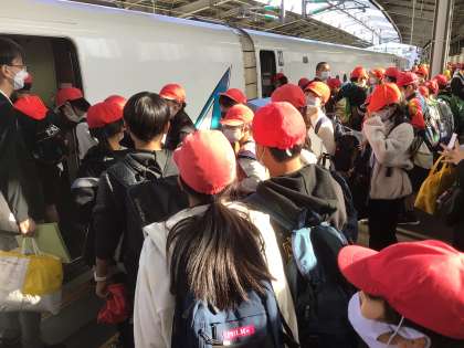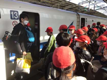 新幹線初体験の児童もいます。 大コーフンッ!