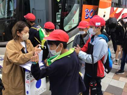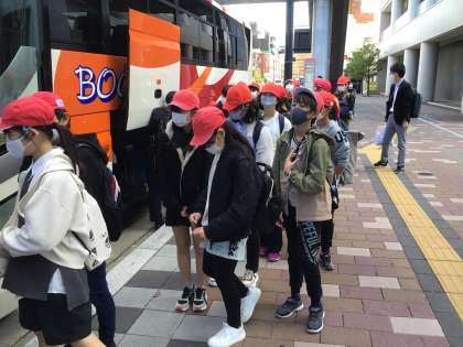 大きな荷物をバスのおなかに入れて、さあ行こう!