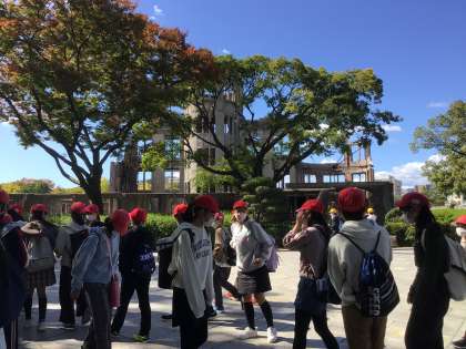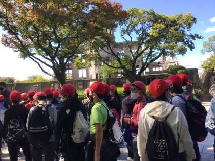 【26日水曜 6年生 修学旅行 広島平和学習】30 公開日 2022/10/26 更新日 2022/10/26 五常小の日常 はい、更新を再開します。 一行は、平和記念公園に到着しました。 これから原爆ドームをバックに記念撮影するため、公園内を行進します。 いいね(0)