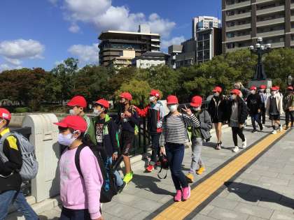 【26日水曜 6年生 修学旅行 広島平和学習】35 公開日 2022/10/26 更新日 2022/10/26 五常小の日常 次は、平和セレモニーのため移動します。 結構秋の色をしていますね。 とても美しい平和公園です。 いいね(0)