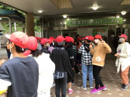 【27日木曜 6年生 修学旅行 3億年の旅秋芳洞】27 公開日 2022/10/27 更新日 2022/10/27 五常小の日常 秋芳洞に着きました。 修学旅行は1泊2日ですが、今から体験するのは、3億年の旅です。 いいね(0)